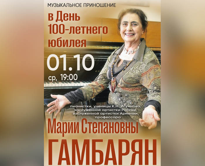 В день 100-летнего юбилея прозвучит концерт – музыкальное приношение в честь профессора Марии Степановны ГАМБАРЯН, советской и российской пианистки