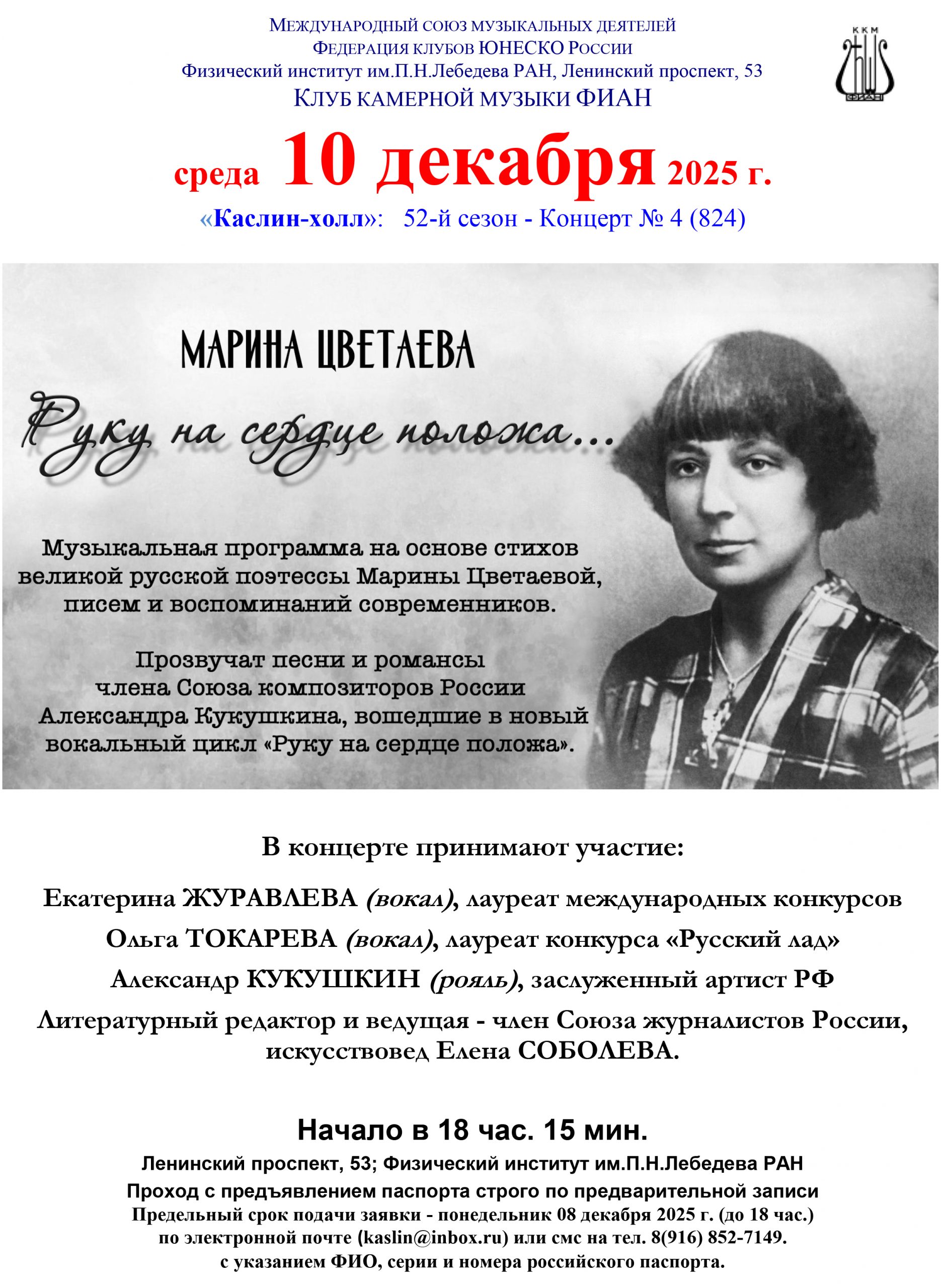 Напоминаем, что в связи с усилением пропускного режима, проход гостей ФИАНа на концерты будет осуществляться строго по заранее составленным спискам с предъявлением РОССИЙСКОГО паспорта.