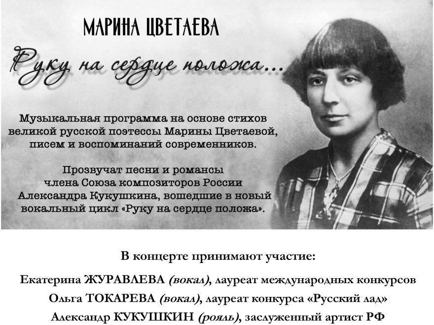 Вас ждет музыкально-литературная композиция о творчестве выдающейся русской поэтессы Марины Цветаевой.