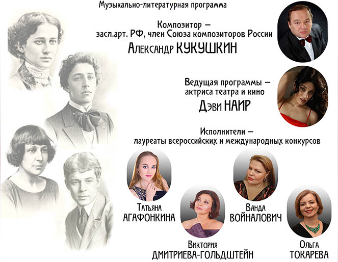 На музыкально-поэтическую программу «Отзвуки Серебряного века», прозвучит поэзия Блока, Цветаевой, Ахматовой, Есенина и других поэтов в жанре современного романса. Композитор